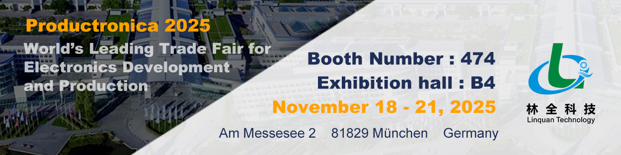 Productronica 2025 November 18-21,2025 Messe München B4/4742025-11-03|In News|By Lin QuanProductronica 2025 November 18-21,2025 Messe München B4/474 -Shenzhen Linquan Technology Co., Ltd. We look forward to your arrival April 13, 2023 Munich Shanghai Electronic Production Equipment Exhibition
