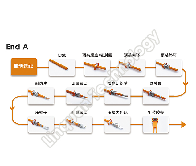 高压线束穿防水栓,剥内皮,端子压接一体机